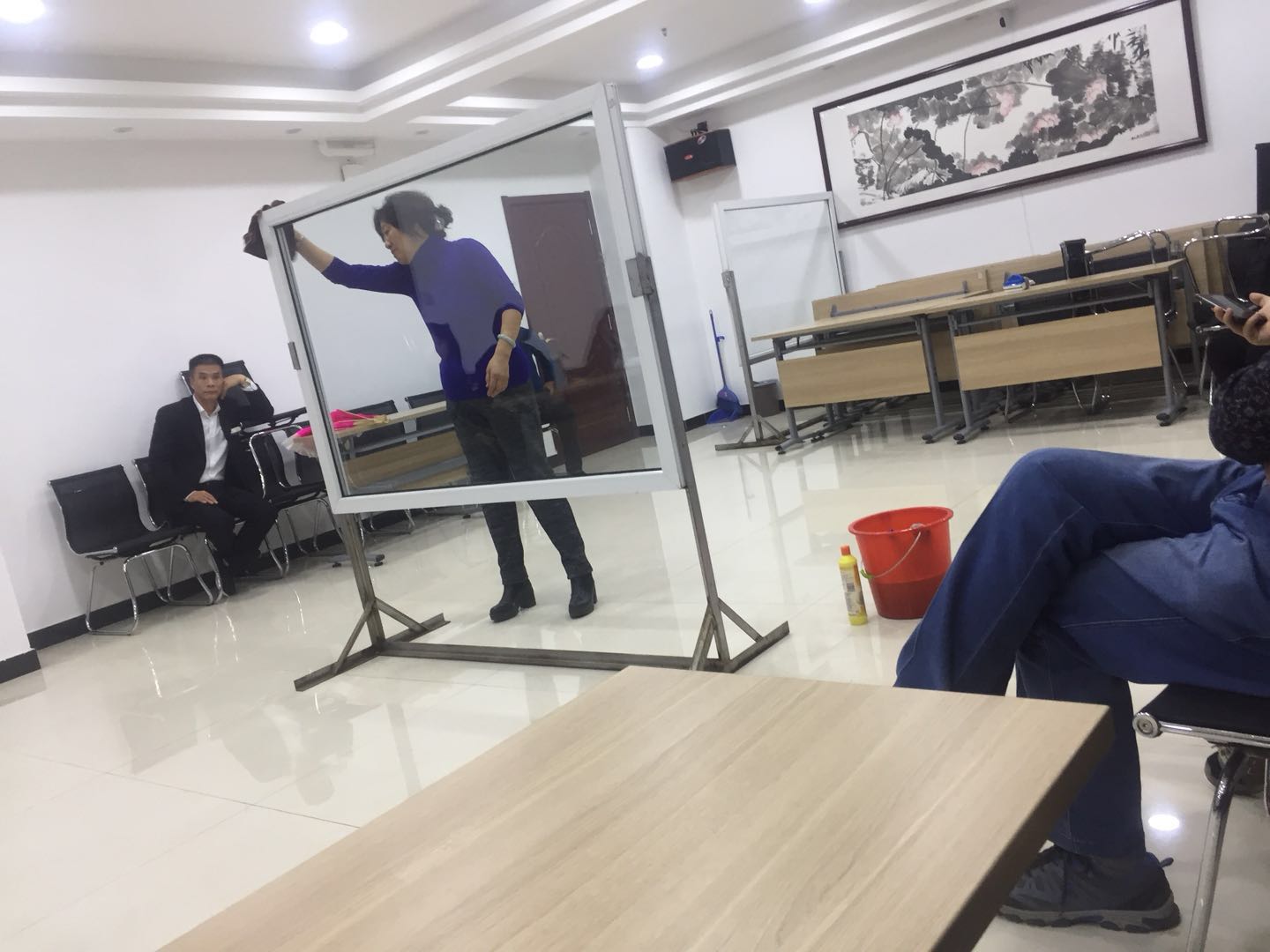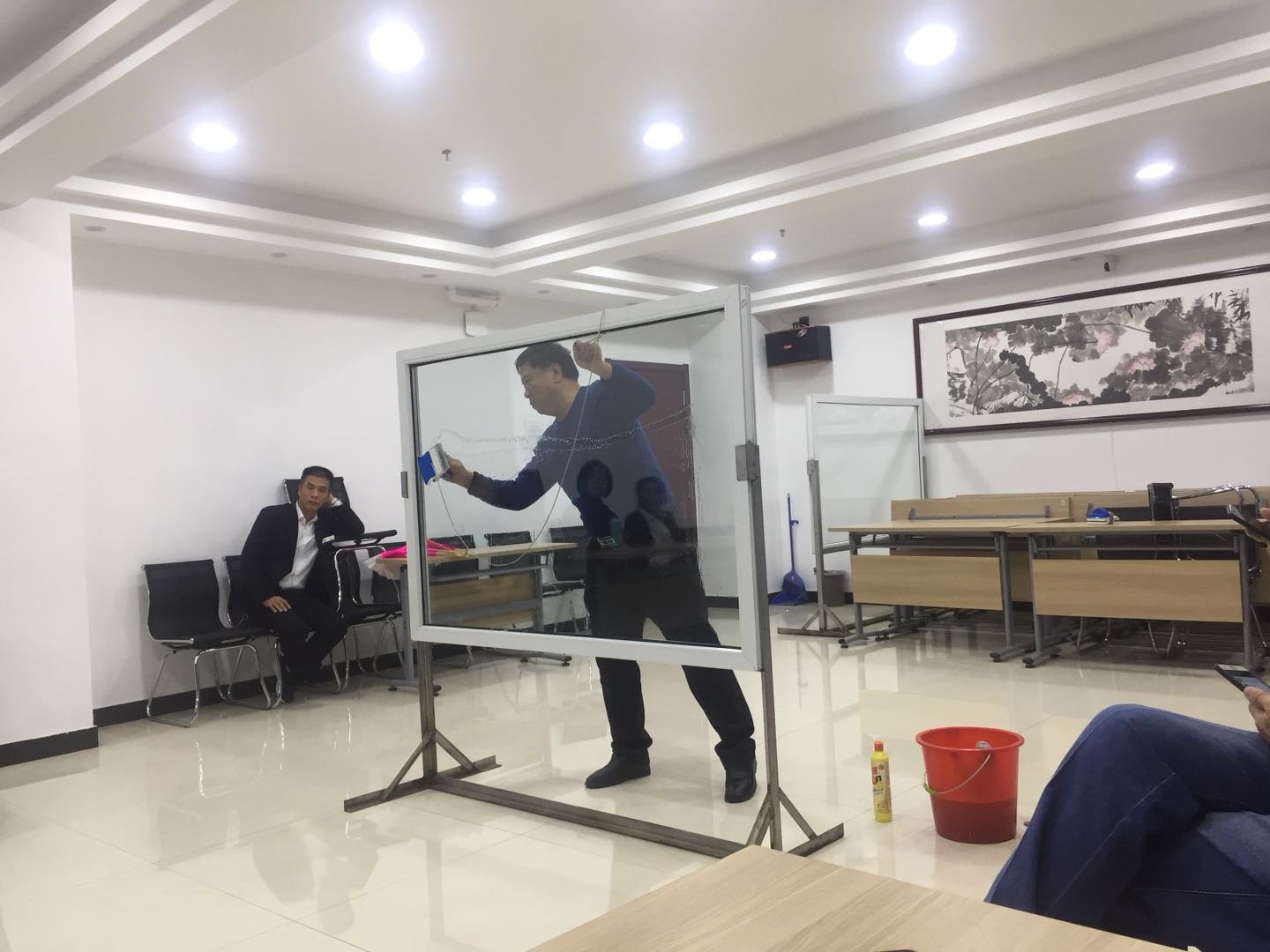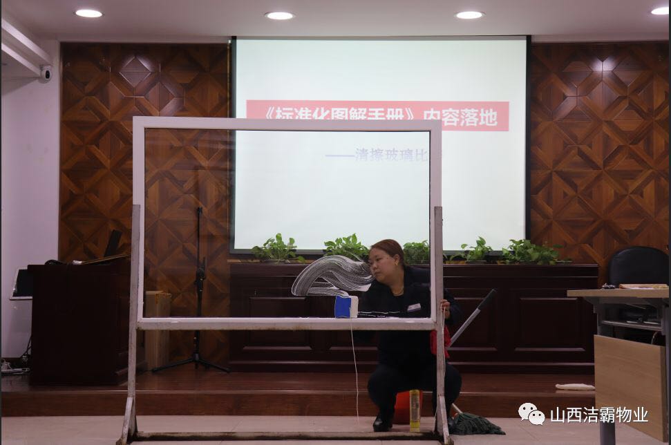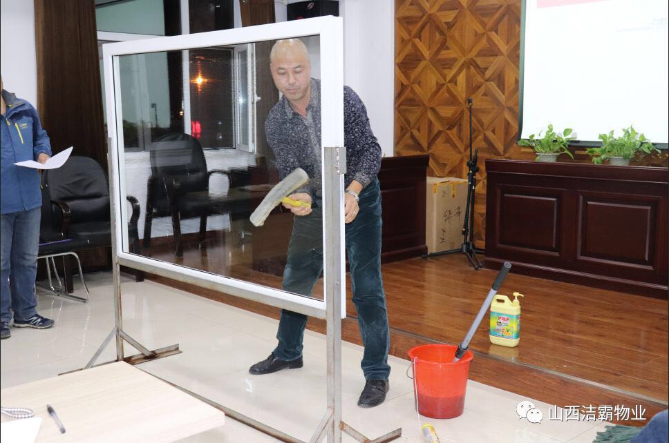 為提高公司管理人員基礎(chǔ)技能,潔霸公司利用周四內(nèi)部員工培訓(xùn)的時間組織了一次系統(tǒng)的內(nèi)部管理人員檫玻璃培訓(xùn),隨后并進行了以組為單位的檫玻璃競賽。
