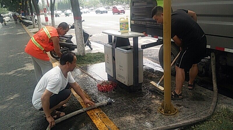認(rèn)真清洗垃圾桶周圍油污