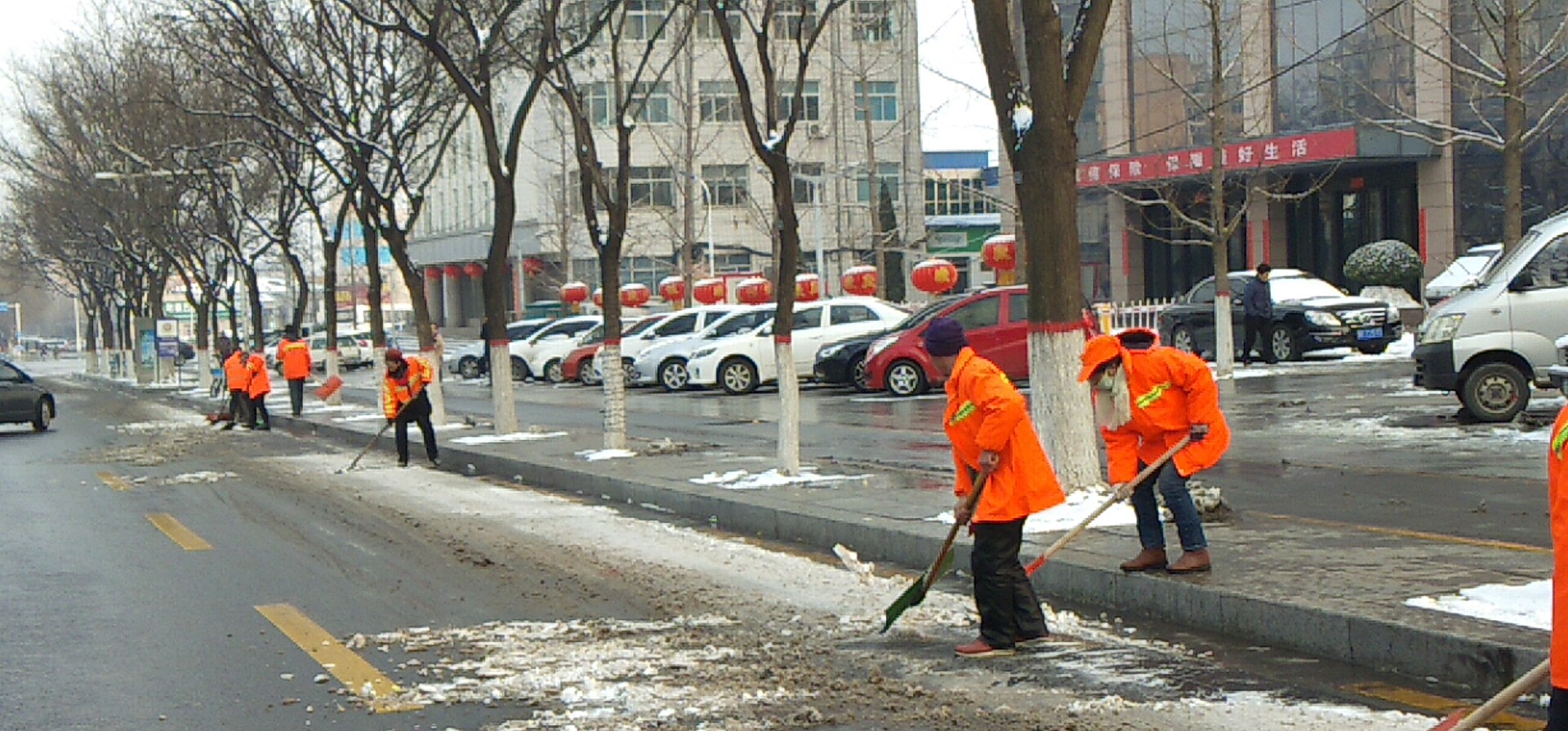 新年的第一場大雪,到處銀裝素裹,扮美了整個(gè)晉城,但大雪帶來美景的同時(shí),也給大家的出行帶來了不便。為保障大雪期間出行安全,潔霸公司各保潔點(diǎn)的負(fù)責(zé)人積極組織員工進(jìn)行主干道積雪清掃,在除雪過程中,雖然天氣寒冷,但大家除雪的熱情卻不減,大家有的撒融雪劑,有的 清掃積雪,有的用鏟子除冰,奏響鏟雪破冰進(jìn)行曲。