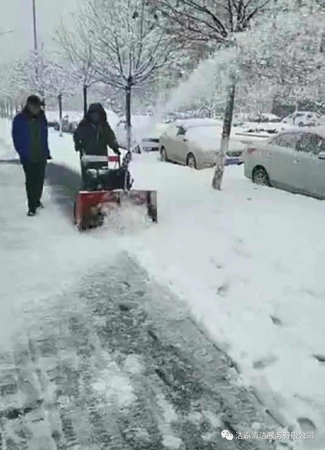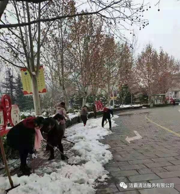 為了消除安全隱患,確保人們出行安全,潔霸公司各個項目部、服務(wù)點也積極行動起來,投身到掃雪活動中。他們有的向地面撒鹽,有的用掃雪機清掃積雪,有的拿鐵鍬鏟雪,有的拿笤帚掃雪,有的用簸箕攬,也有的用桶子裝……雖然寒冷,但大家的心卻很溫暖,熱火朝天的掃雪場面給這個寒冷的冬季帶來一絲暖意。為掃出一片安全通道,大家共同努力著,天空中飄著的雪花與大家忙碌的身影構(gòu)成了雪后一道靚麗的風(fēng)景線。