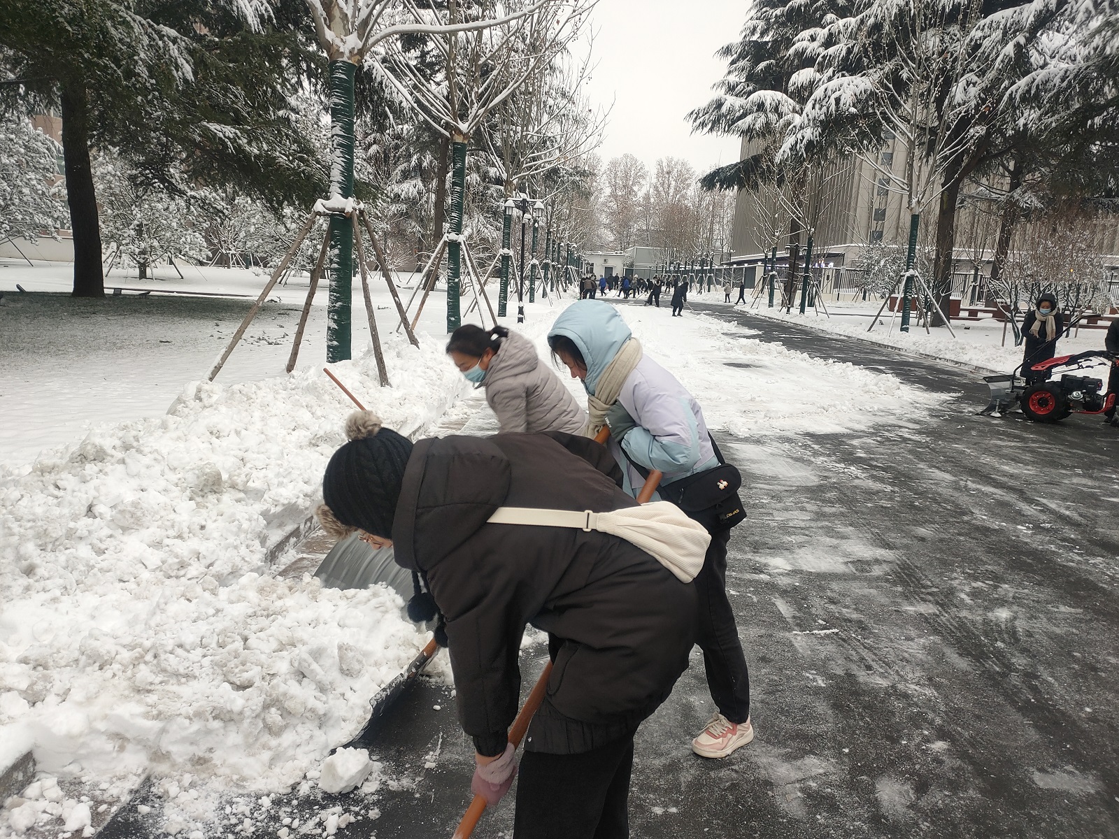持續(xù)降雪,連續(xù)作業(yè)。16日晚,我市再次迎來降雪天氣。17日一大早,公司全體黨員和入黨積極分子又第一時間投入到市政府除冰雪的戰(zhàn)斗中,大家團結(jié)協(xié)作,不畏嚴寒,確保了上午九點以前市政府院內(nèi)人員、車輛通行順暢。