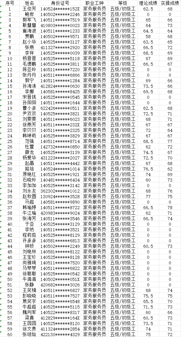 202477日第19批家政服務(wù)員初級認(rèn)定人員成績公示