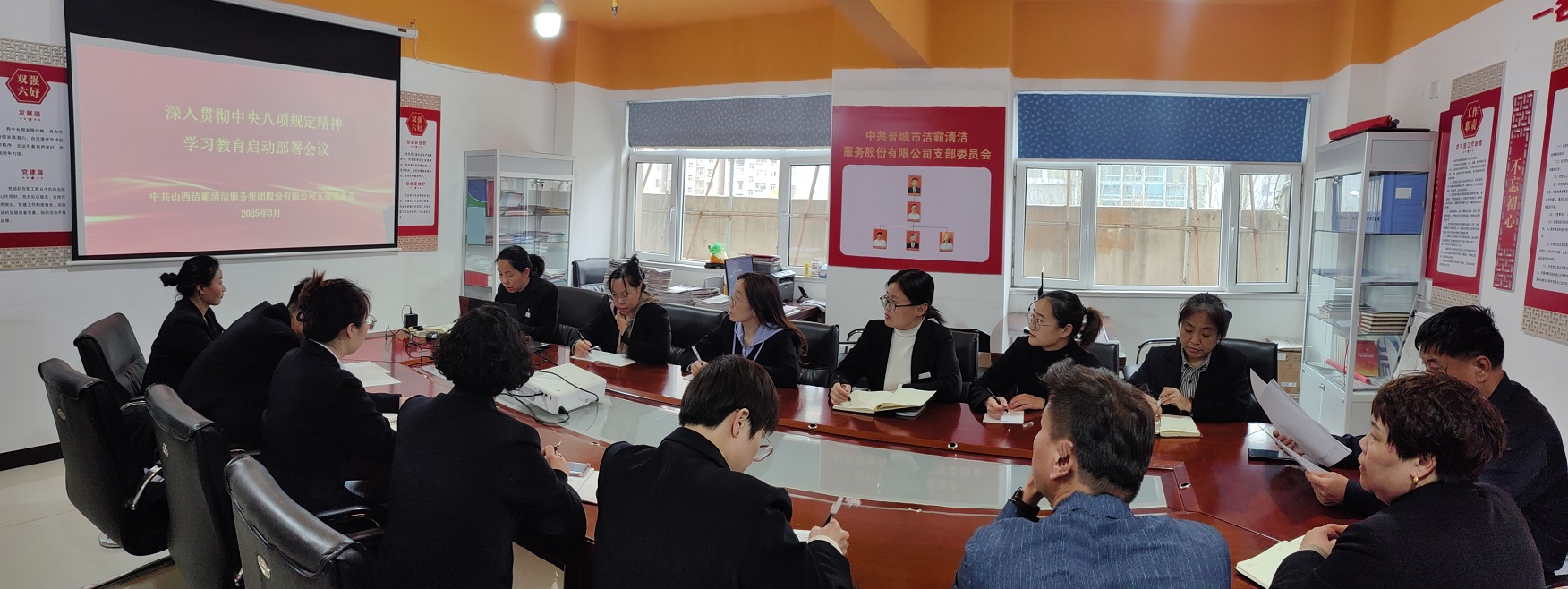 近日,山西潔霸清潔服務(wù)集團(tuán)股份有限公司黨支部召開專題會議,對公司開展深入貫徹中央八項(xiàng)規(guī)定精神學(xué)習(xí)教育進(jìn)行部署。支部書記程晉軍主持會議并講話。