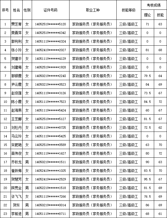 山西潔霸清潔服務(wù)集團股份有限公司職業(yè)技能等級認(rèn)定中心現(xiàn)在將2025年8月30日認(rèn)定人員成績公示如下: