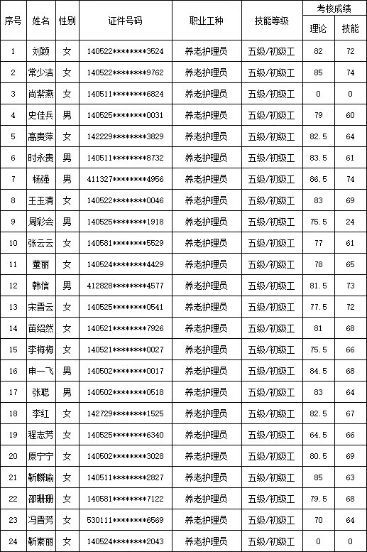 山西潔霸清潔服務(wù)集團(tuán)股份有限公司職業(yè)技能等級認(rèn)定中心現(xiàn)將2025年11月2日認(rèn)定人員成績公示如下: